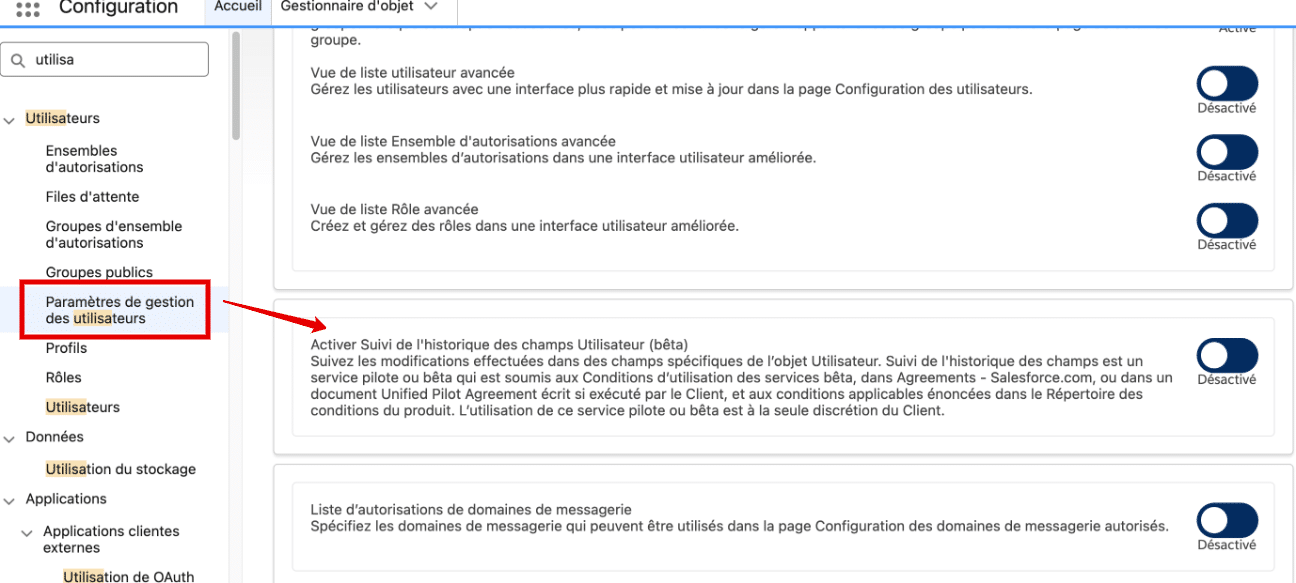5. Suivi de l’historique des champs sur l’objet utilisateur