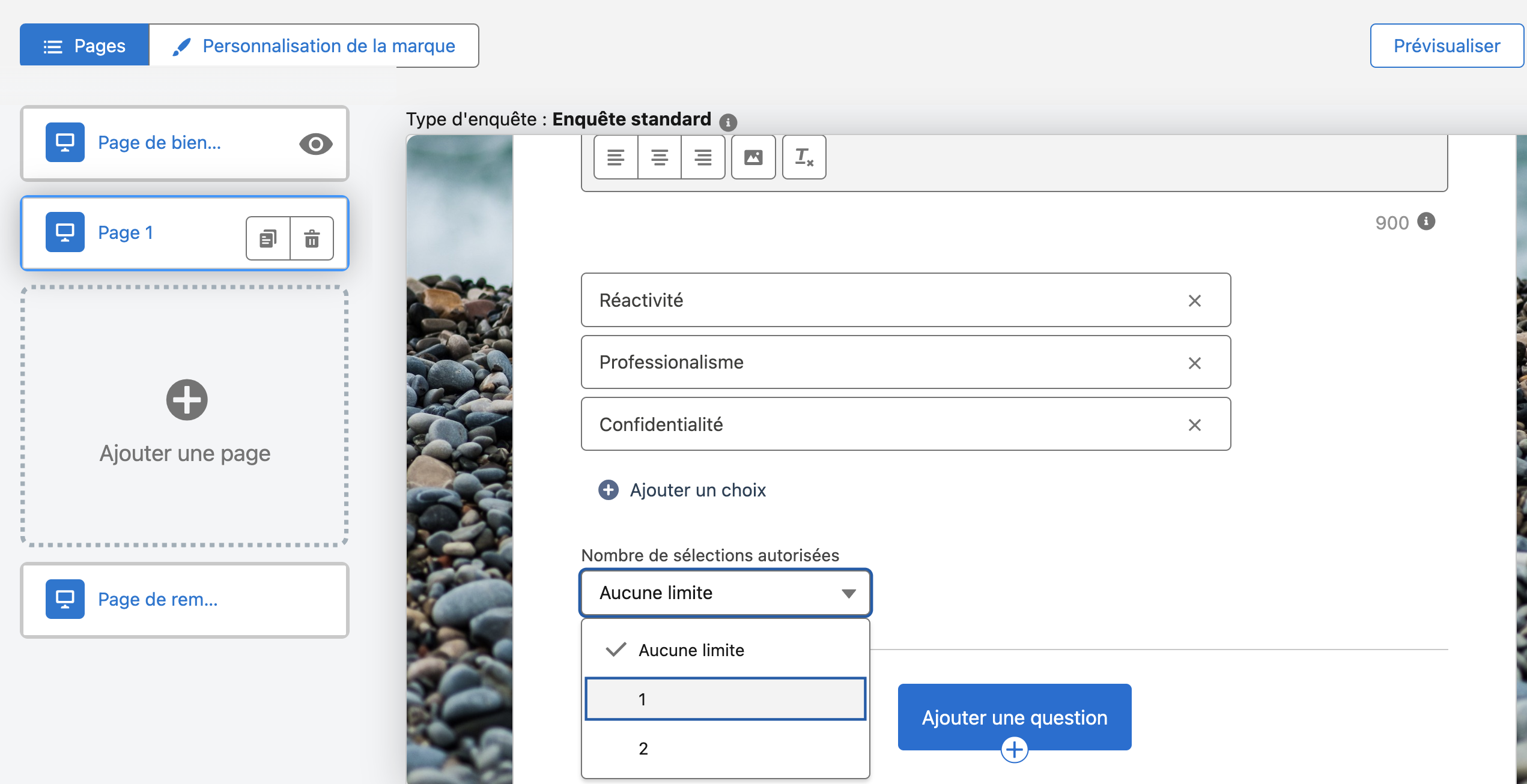 Lorsque vous créez une question de sondage à choix multiples, vous pouvez maintenant définir le nombre maximum de choix que vos utilisateurs peuvent sélectionner.